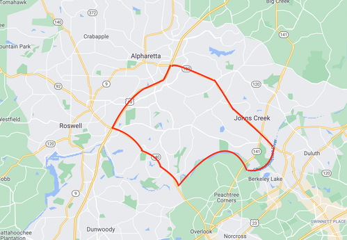 We would like to be at or north of Holcomb Bridge Road, at or south of Old Milton Parkway, east of 400 and west of the Chattahoochee River.